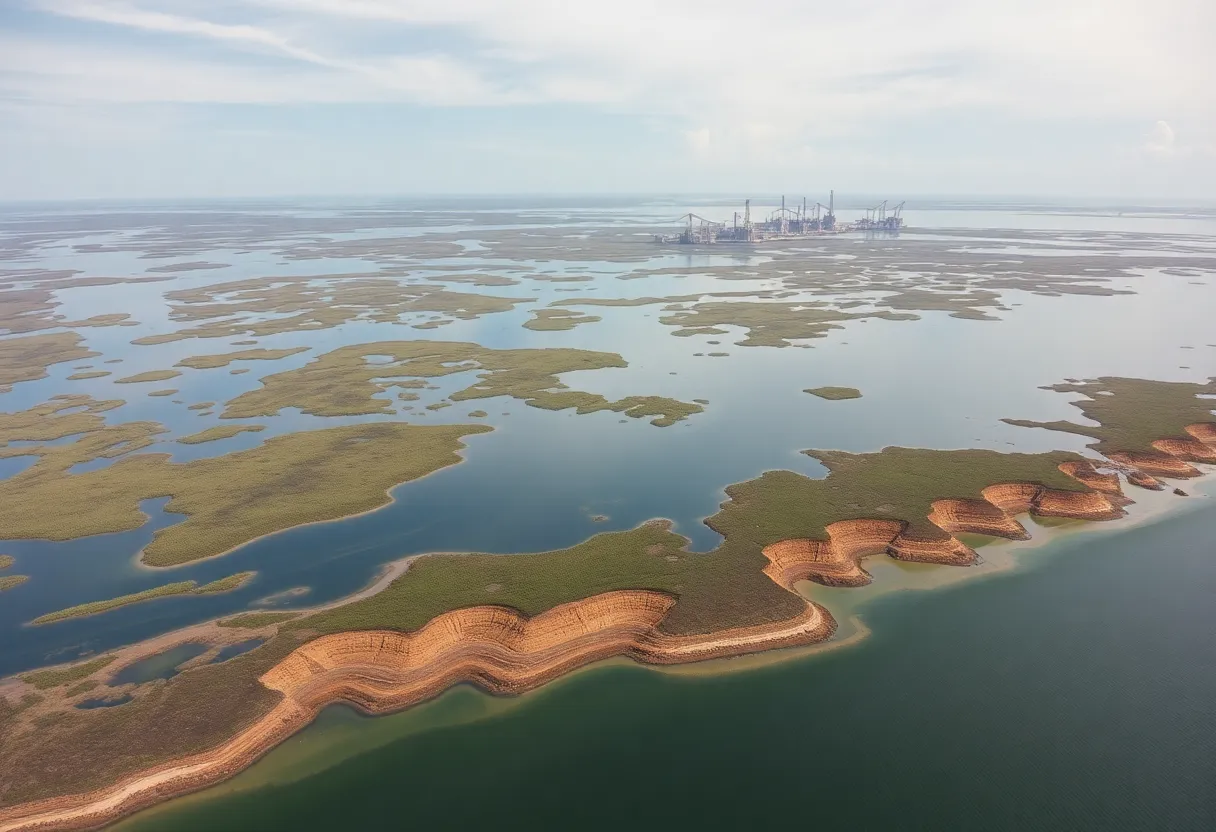Aerial view of eroded coastal wetlands in Louisiana