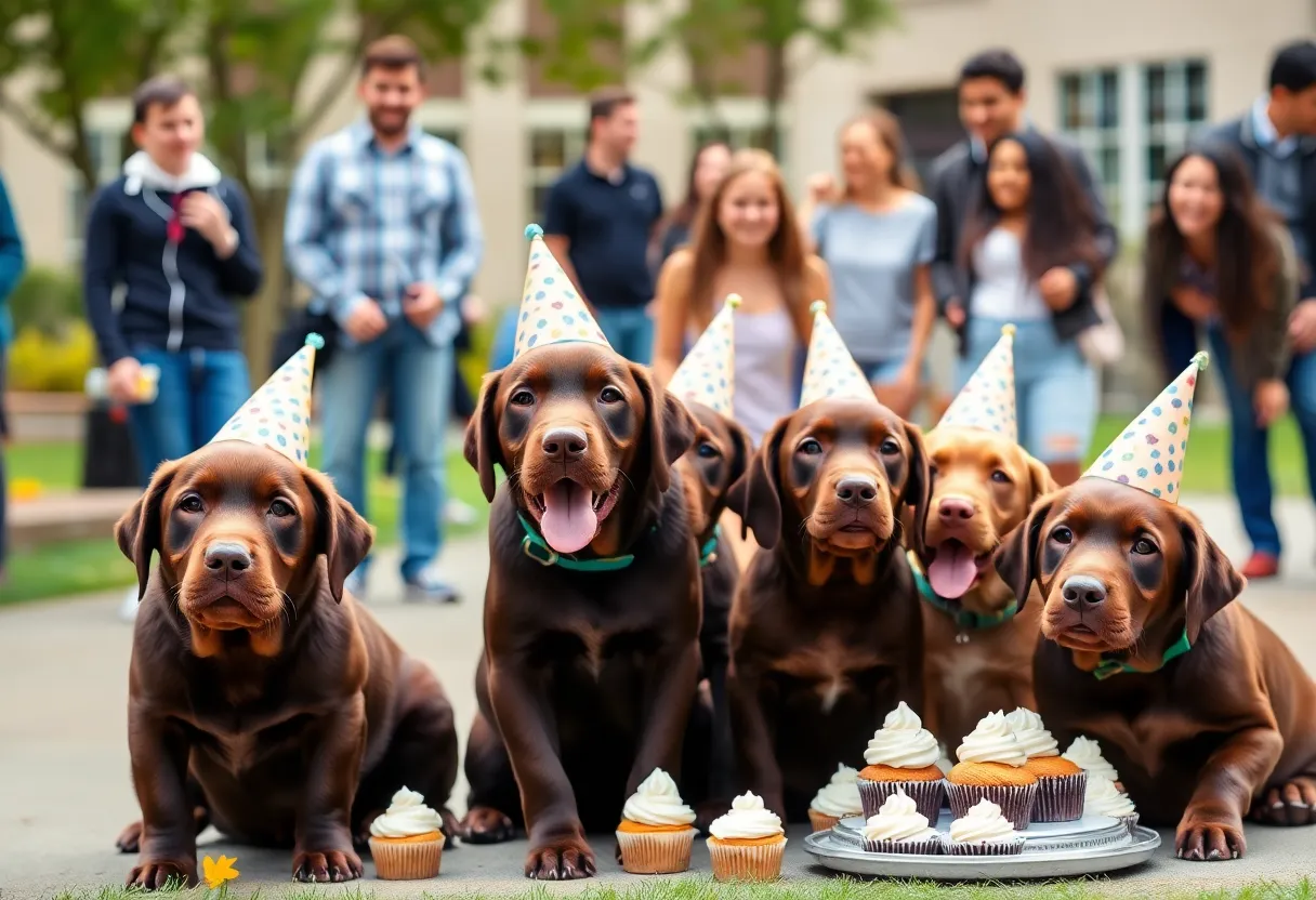 Livonia, a lively city in Michigan, recently witnessed a heartwarming event that warmed the hearts of many on the Schoolcraft College campus. On a bright and cheerful day, five adorable chocolate labrador retrievers celebrated their first birthdays with a graduation party that was both joyous and meaningful. These furry graduates, named Scout, Copper, Mocha, Starla, and Teddy, proudly completed their year of training at what some affectionately call “comfort care college.”