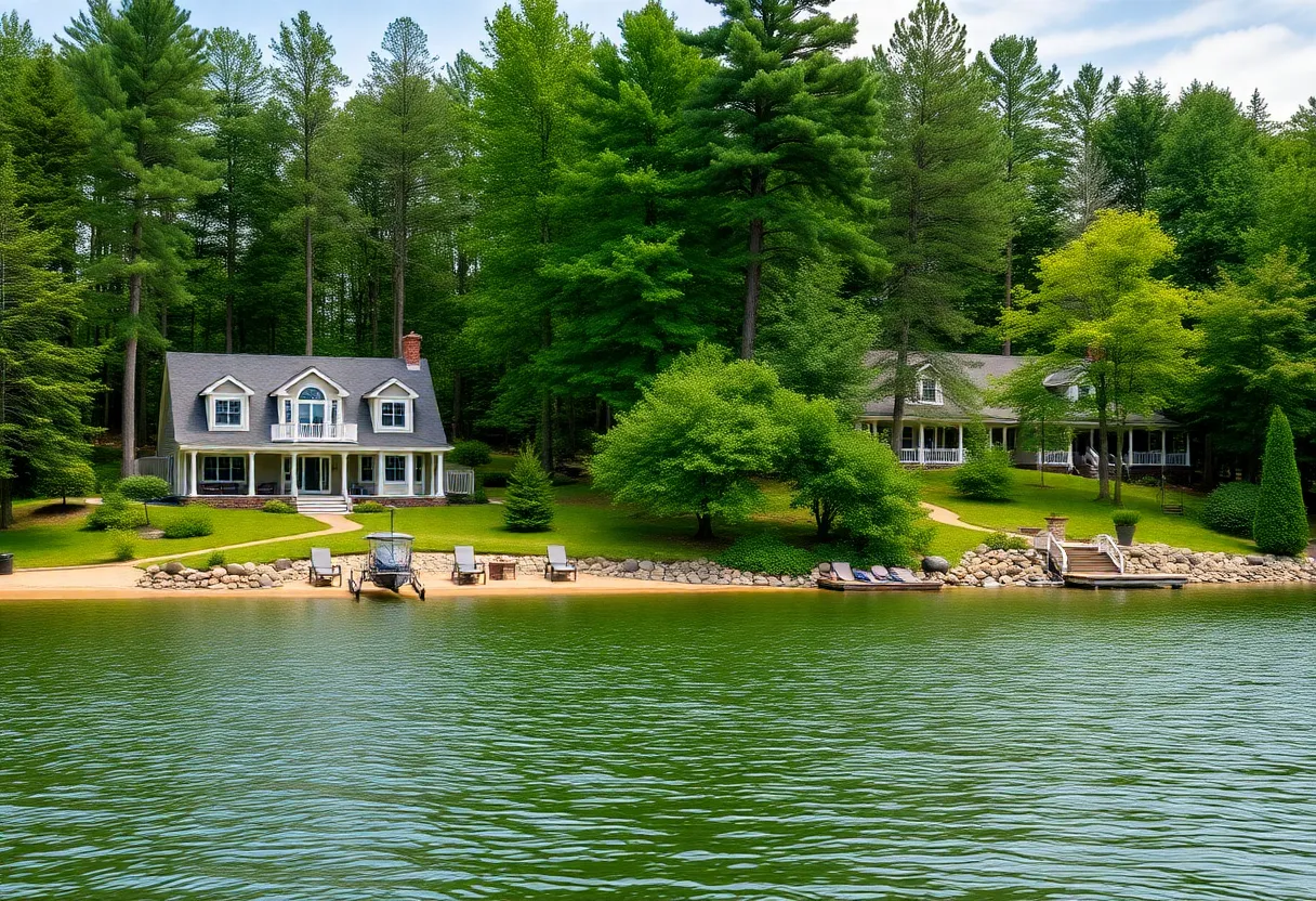 Mears, Michigan – A stunning estate featuring two homes has been listed for $6.7 million in Mears, Michigan, located at 8282 W. Harrison Road. This remarkable property, named MLive’s House of the Week, encompasses beautiful woodland and lakefront nature, accompanied by a serene atmosphere enhanced by its private beach access.
