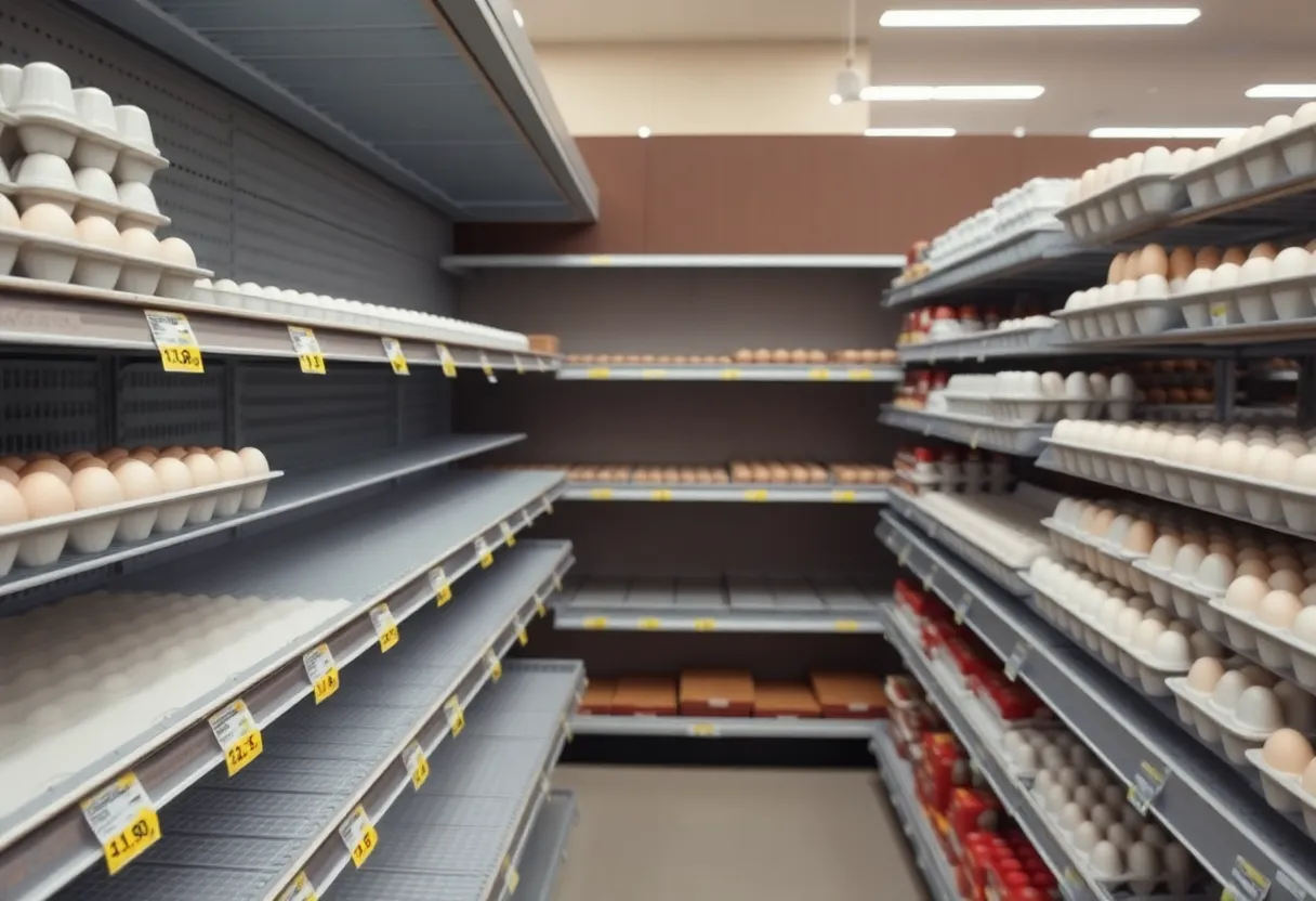 Egg prices in Michigan have surged from $3.08 to $4.15 per dozen in just a few months due to a devastating bird flu outbreak that has affected millions of egg-laying hens. The situation has led to empty shelves and confusion regarding new cage-free laws. With significant reductions in supply and the potential for continued price increases, shoppers in Michigan are facing challenges in securing affordable eggs. State officials stress the importance of monitoring and biosecurity measures to combat the crisis.