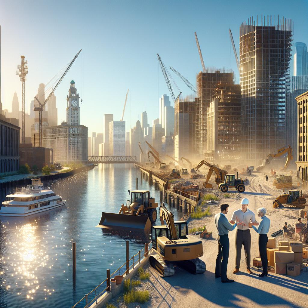 Riverfront city transformation concept.